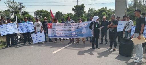 Aksi massa JAKOR yang di Koordinatori oleh Fadrianto TH di dampingi oleh Idil F dalam orasinya, Jum’at (10/04/26) mengatakan,” berdasarkan data temuan team investigasi serta informasi yang kami (JAKOR) dapatkan tentang adanya Dugaan Korupsi, Kolusi dan Nepotisme (KKN) di wilayah Hukum Sumatera Selatan, maka kami ( Dewan Pimpinan Jaringan Anti Korupsi Sumatera Selatan ) menggelar aksi unjuk rasa di Kejaksaan Tinggi Sumatera Selatan (Kejati Sumsel).