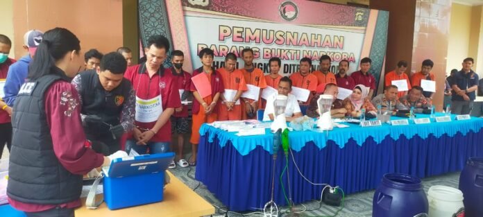 Ampuhmews.com Palembang – Direktorat Reserse Narkoba (Ditresnarkoba) Polda Sumatera Selatan kembali musnahkan Barang Bukti (BB) narkotika golongan satu jenis sabu sebanyak 1789,19 gram dan ektasi 6404 butir di Gedung Prof Dr Awaloedin Djamin MBA, Ditresnarkoba Polda Sumsel, Jum’at (31/10/2025).