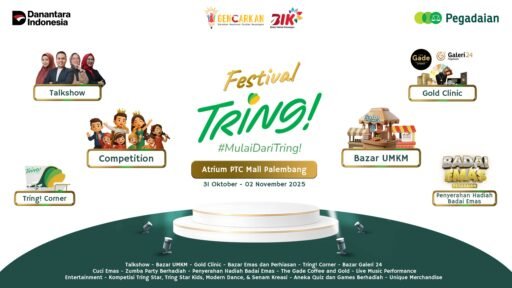 Ampuhnews.com | Palembang – PT Pegadaian sambut meriah kehadiran aplikasi terbarunya Tring! by Pegadaian, dengan menggelar Festival Tring! di Kota Palembang PTC Mall Festival akbar di Sumatera Selatan akan berlangsung dari 31 Oktober hingga 02 November 2025, yang menjadi ajang perkenalan dan penanda resminya kehadiran aplikasi tersebut di tengah masyarakat SumBagSel.