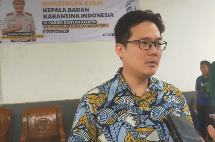 Ampuhnews.com Palembang – Kepala Badan Karantina Indonesia (Barantin) Dr Sahat Manaor Panggabean SIP MSi, kunjungi pabrik santan kelapa milik PT YSK Kelapa Ogan Sejahtera di Desa Babatan Saudagar Kecamatan Pemulutan Kabupaten Ogan Ilir Provinsi Sumatera Selatan (Sumsel), Jumat (10/10/2025).
