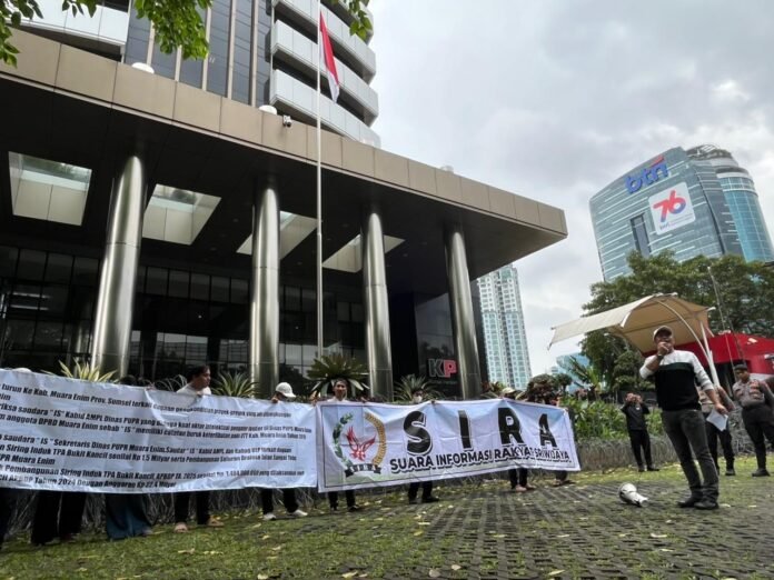 Amouhnews.com | Jakarta, – Suara Informasi Rakyat Sriwijaya (SIRA) mendatangi Gedung Merah Putih Komisi Pemberantasan Korupsi Republik Indonesia (KPK RI) untuk melakukan aksi unjuk rasa damai dalam rangka menyampaikan dukungan kepada Lembaga Anti Rasuah yang terkenal dengan “OTT” nya untuk kembali turun ke Kabupaten Muara Enim, Provinsi Sumatera Selatan.
